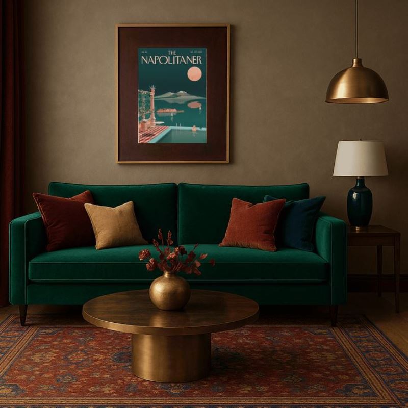 Per implementare questa tendenza, puoi optare per cuscini rosso borgogna e verde oliva, tessuti o elementi dorati e centrotavola che incorporino questi toni caldi e classici. Le luci soffuse e le candele possono amplificare l’atmosfera natalizia, creando un ambiente accogliente e rassicurante.