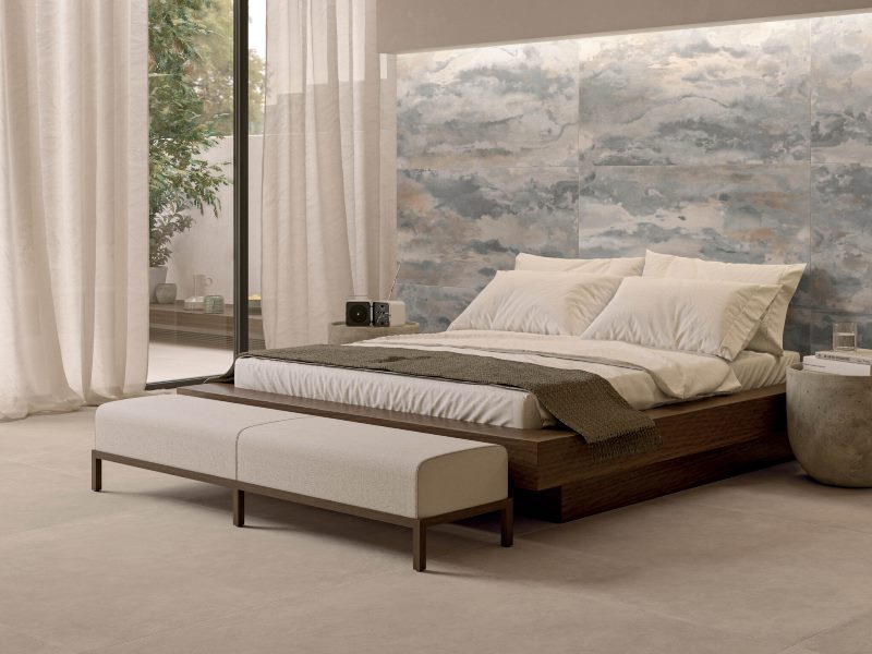 Le superfici della collezione Marea Quintessenza richiamano i riflessi e le sfumature dell’acqua. Un invito al relax che trasforma ogni stanza in un luogo di quiete.