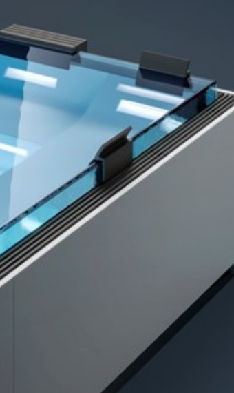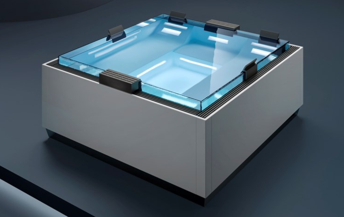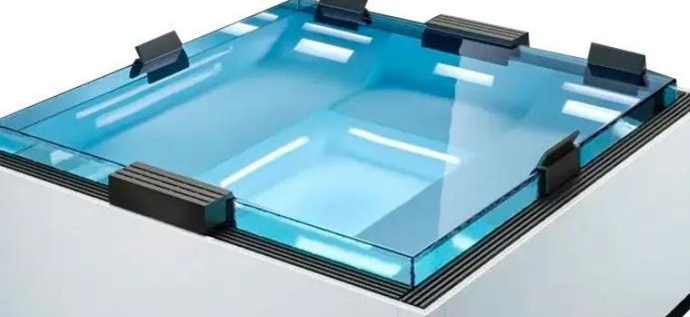 Ice è la nuova minipiscina, progettata da Treesse, con bordo in vetro, a sfioro, dall’effetto suggestivo ed elegante, per garantire relax e design